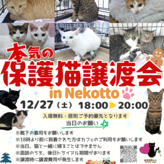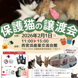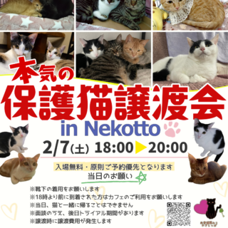 譲渡会のお知らせです。日時:2/9(月) 11:00〜14:...