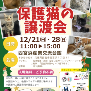 譲渡会のお知らせ 【譲渡会のお知らせ】12/21(日)・28(日)