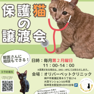 譲渡会のお知らせ 【譲渡会のお知らせ】2/9(月) 会場:オリバーペットクリニック