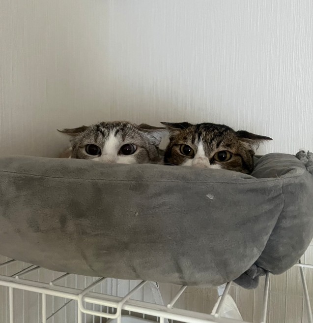 人が怖くて保護してからも年単位で慣れることがなかった花ちゃんとジョナくんでしたが、預かりボランティア様の献身的なお世話によりお尻トントンとちゅ~るが大好きになりました。