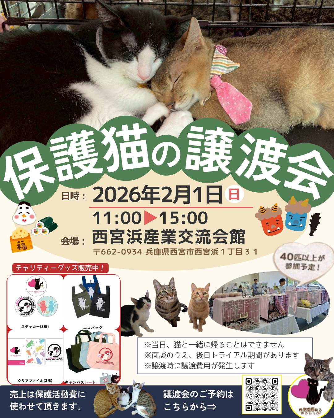 今回も1歳未満の子猫たちを中心に、成猫さんやシニア猫さんもあわせて約40匹以上が参加予定です。