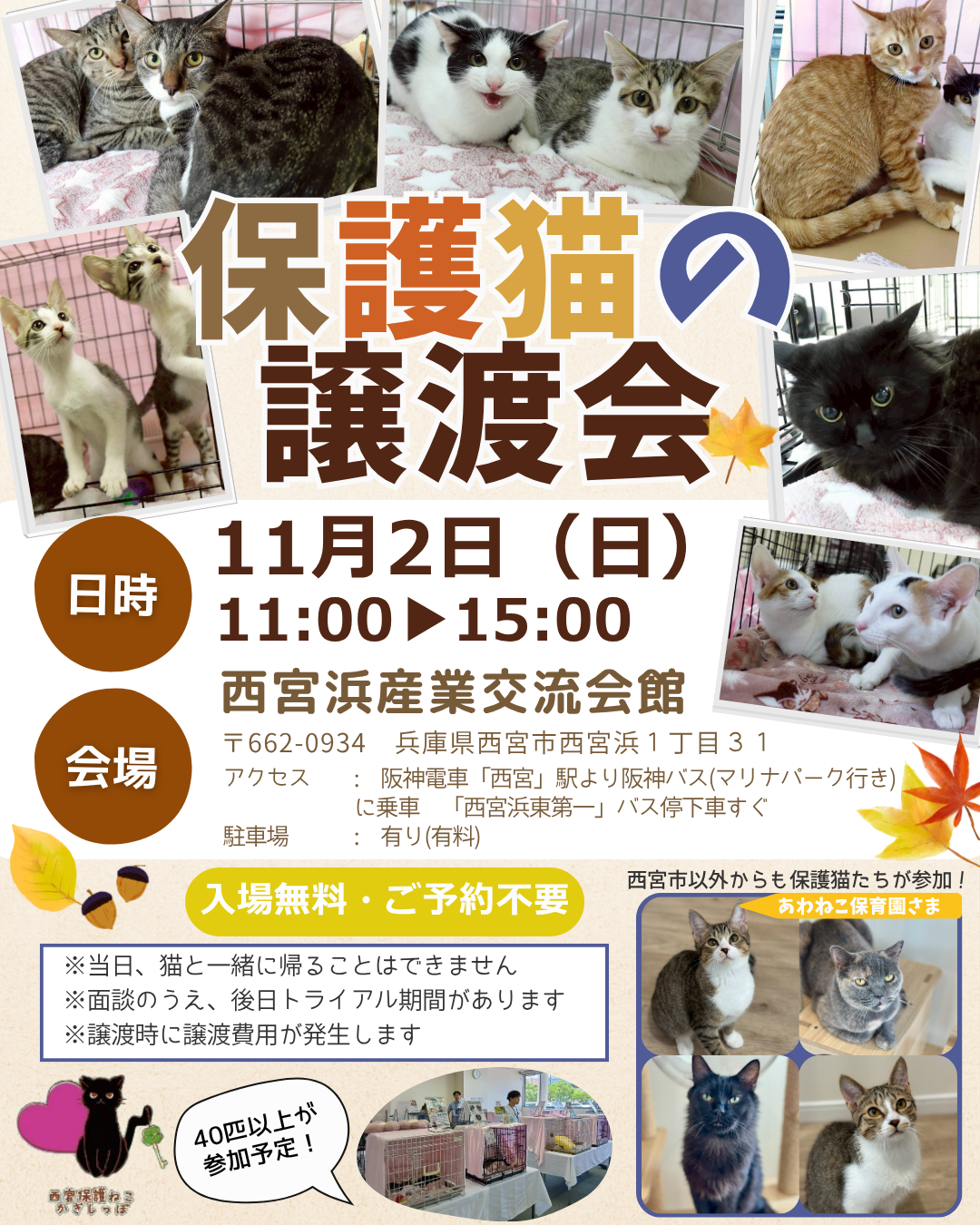 今回もたくさんいる子猫たちを中心に、成猫さんやシニア猫さんもあわせて約40匹ほど参加予定です。