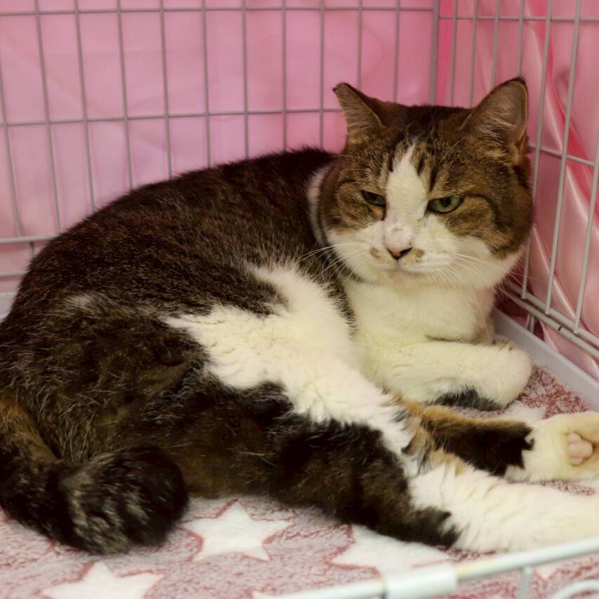 短いしっぽと、ころんとしたダイナマイトボディがチャームポイントの推定14歳のおばあちゃん猫です。