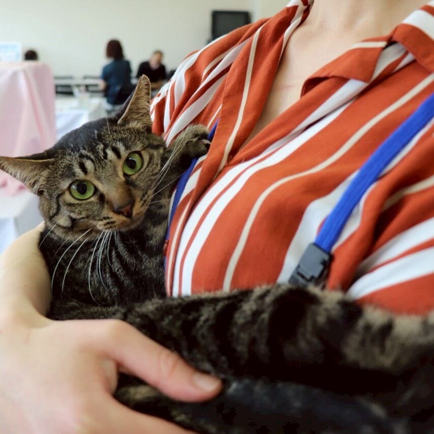 譲渡会でも抱っこできるぐらいに大人しく、人馴れもしていますが、3枚目の写真のように固まってしまっていたり、毛布の中に隠れたりして譲渡会では上手にアピールできずにまだお家が決まっていません。