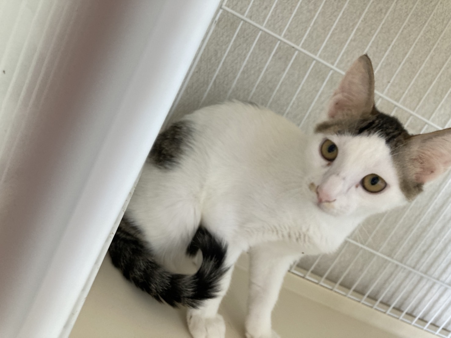 一目見て「カワイイ!」という雰囲気ではなく、一緒に暮らしていると「じわじわくるわ〜おもろいわ〜」となる噛めば噛むほど味が出るスルメタイプなのと譲渡会でのアピール下手も相まって、気づけばかぎしっぽの保護猫の中でもすっかり古株さんに💦