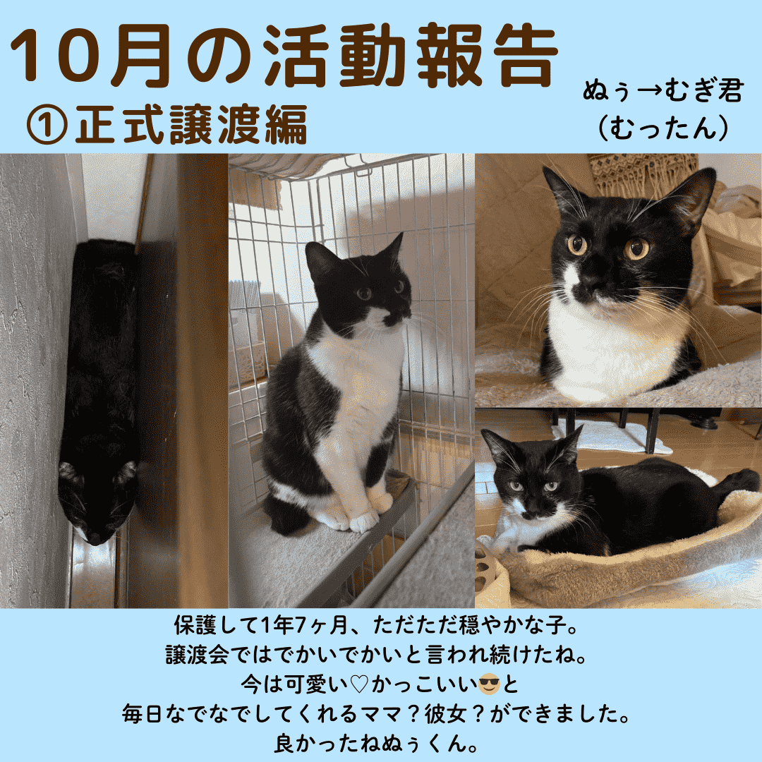 保護して1年7ヶ月ただただ穏やかな子。譲渡会ではでかいでかいと言われ続けたね。