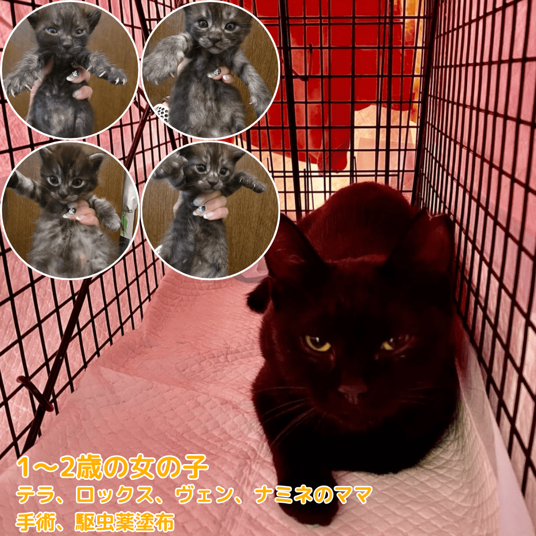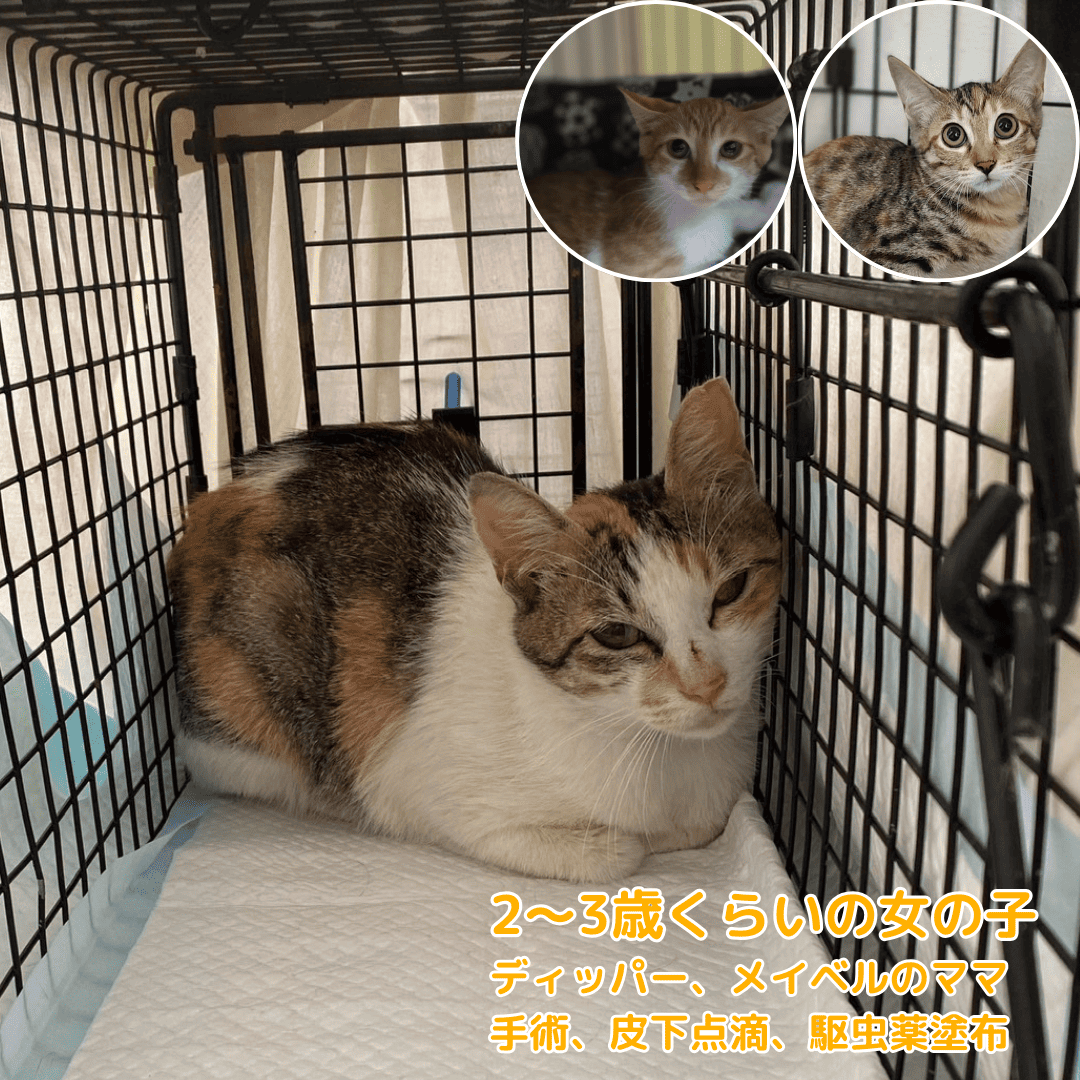 今回はTNR中に保護となる子猫さんが多く(13匹)、TNR以外の子猫さん保護と合わせてまだまだ子猫ラッシュは止まる気配がありません。ママ猫と出来るだけ保護をしてあげたいのですが、現在かぎしっぽでは過去最高の90匹を超える保護となっており、預かりボランティアさんのおうちに空きがありません。