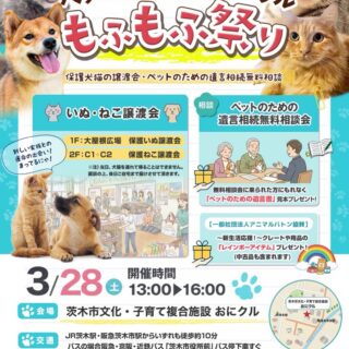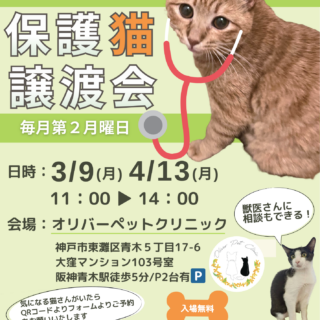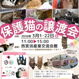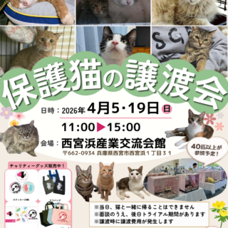 譲渡会のお知らせ 【譲渡会のお知らせ】4/5(日)・4/19(日) 西宮浜産業交流会館