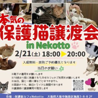 譲渡会のお知らせです。今月も1歳未満の子猫たちを中心に、成猫...