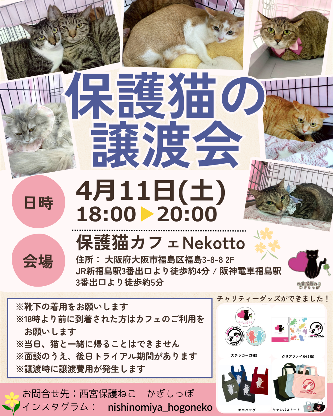【保護猫譲渡会】 4/11(土)保護猫カフェNekotto