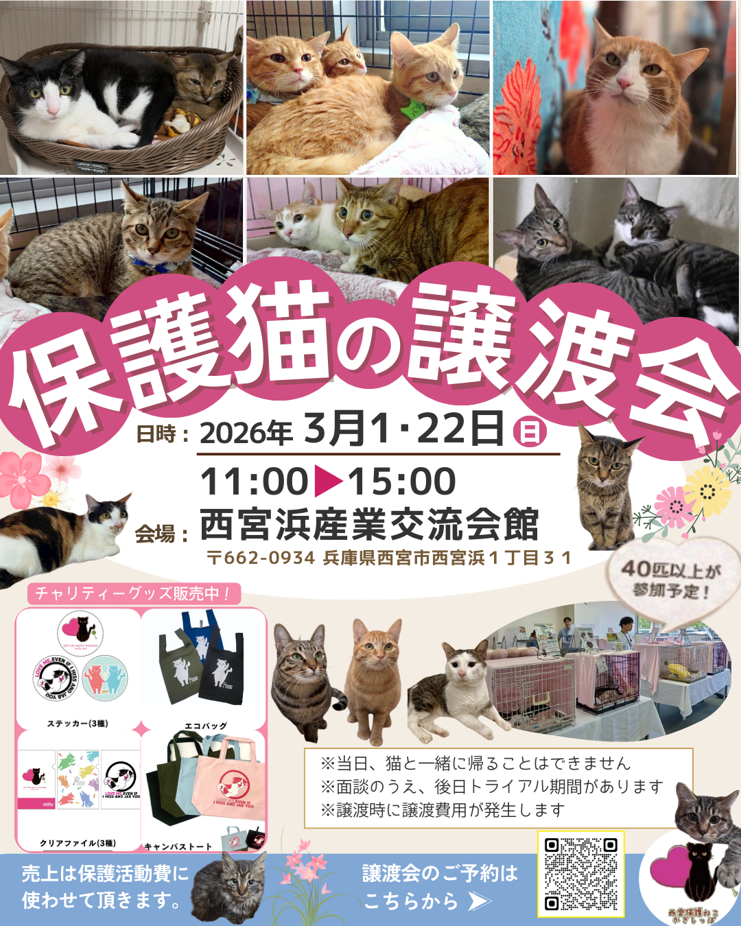 【譲渡会のお知らせ】3/1(日)・3/22(日) 西宮浜産業交流会館